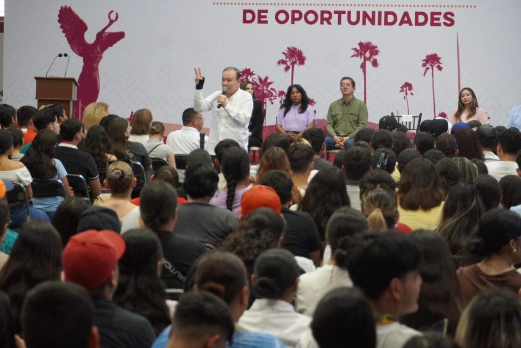 Navojoa, Sonora, 4 de junio 2025.- Que el destino se puede reescribir con ganas, esfuerzo, pero especialmente con educaciÃn, poniendo siempre la mira en el Ãxito aconsejà hoy el gobernador Alfonso Durazo MontaÃo a mÃs de 3 mil jÃvenes universitarios, durante la entrega de becas del programa Sonora de Oportunidades.
