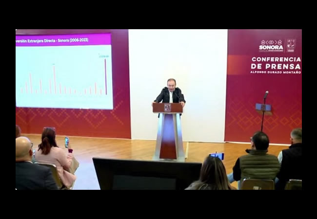 âFÃjense ustedes, la captaciÃn de inversiÃn extranjera directa promedio en aÃos anteriores fue de 300 millones de dÃlares, al concluir el tercer trimestre la inversiÃn extranjera directa en Sonora para este aÃo llega a 2 mil 539 millones de dÃlares, una cifra histÃrica. Y consecuentemente hay una cifra histÃrica en la producciÃn de manufactura y de empleos de trabajadores registrados en el Seguro Socialâ.