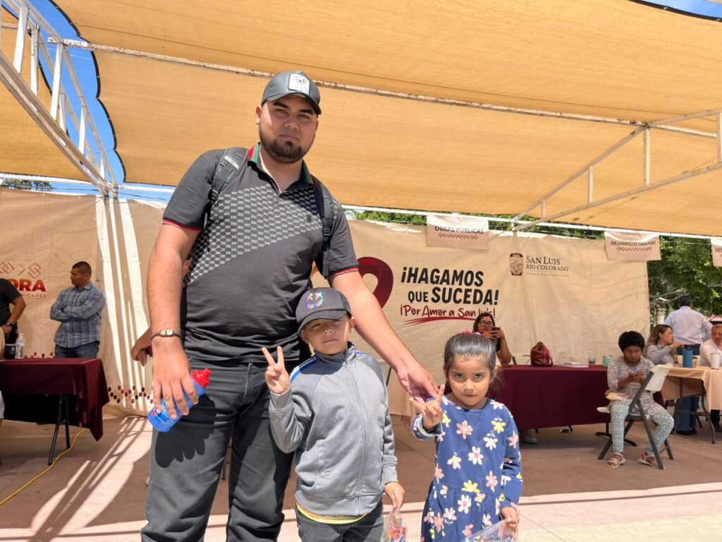 San Luis Río Colorado, Sonora (Abril 22 de 2026).- Cientos de sanluisinos acudieron este miércoles a la Explanada Municipal para participar en una nueva edición de las jornadas “Juntos por Amor a San Luis”, donde pudieron acceder a servicios y trámites de distintas dependencias del 30 Ayuntamiento y del Gobierno del Estado de Sonora, además de recibir atención directa por parte del alcalde César Iván Sandoval Gámez.