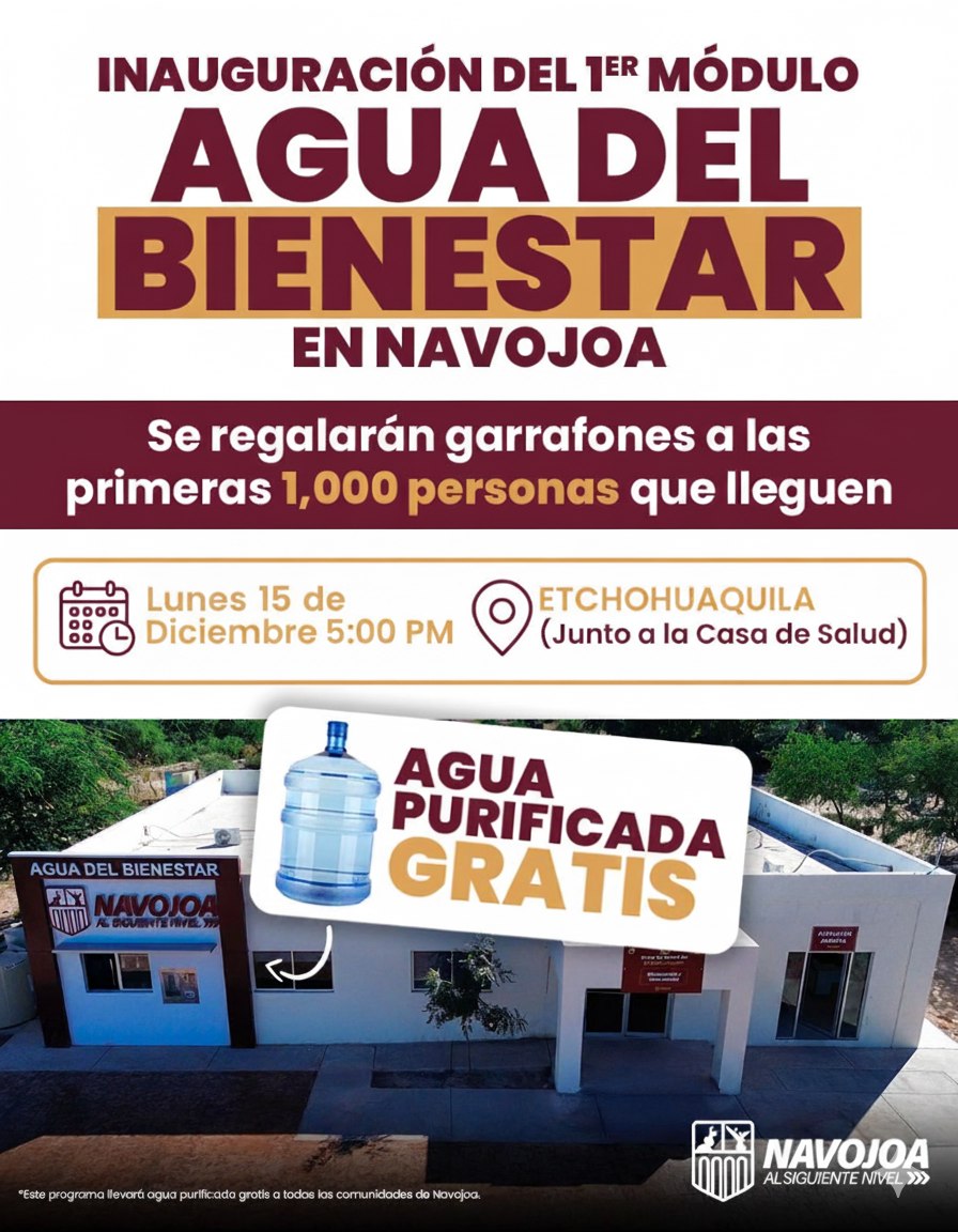 ÂAsiste por tu garrafÃn hoy! La inauguraciÃn serà este lunes 15 de diciembre a las 5:00 de la tarde en la Casa de Salud de Etchohuaquila. Para celebrar el arranque, el Ayuntamiento regalarà 1,000 garrafones (envase y lÃquido) a las primeras mil personas que lleguen al evento.