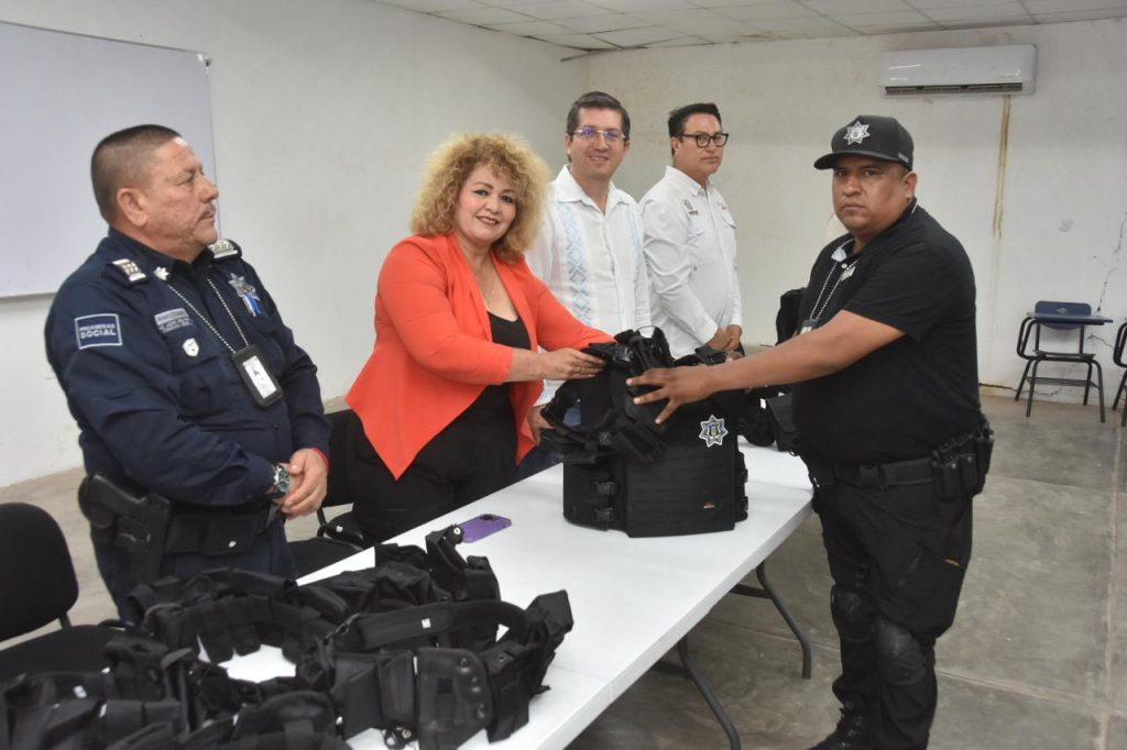 Navojoa, Sonora, 25 de febrero 2026.- Equipamiento tÃctico consistente en 40 chalecos balÃsticos y 40 fornituras entregà este miÃrcoles el alcalde Jorge Alberto ElÃas Retes a la ComisarÃa de Seguridad PÃblica Municipal, enviados por el Gobierno del Estado para refuerzo a la operatividad de la corporaciÃn.