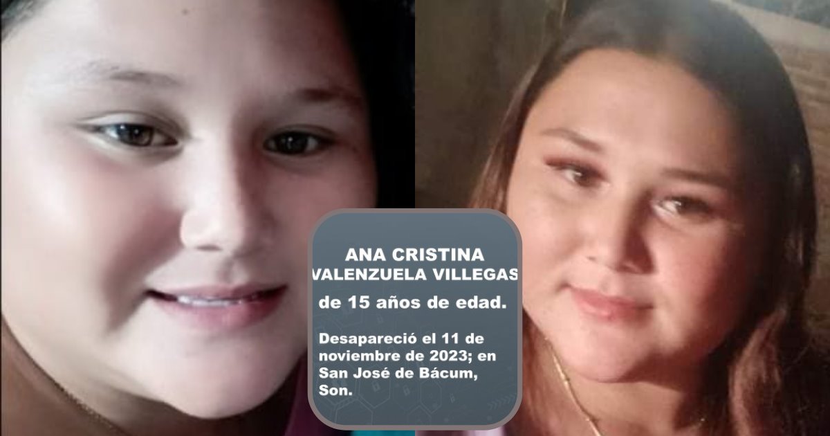 Sonora, MÃxico; a 15 de noviembre del 2023.- Minutos antes de la 00:00 horas de este miÃrcoles, el organismoÂAlerta Amber Sonora emitià la ficha de bÃsqueda de la menor Ana Cristina Valenzuela Villegas, vista por Ãltima vez el pasado 11 de noviembre enÂSan Josà de BÃcum.