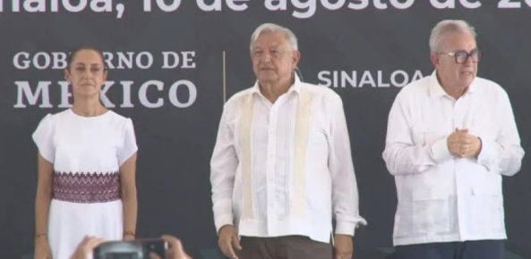 MÃs tarde, a las 5:45 PM, el presidente llegarà a EstaciÃn Rosario, en el municipio de Rosario, para inaugurar la zona de riego de la Presa Santa MarÃa, uno de los proyectos mÃs emblemÃticos de su administraciÃn. En este evento, tambiÃn estarÃn presentes el gobernador RubÃn Rocha Moya y Claudia Sheinbaum.