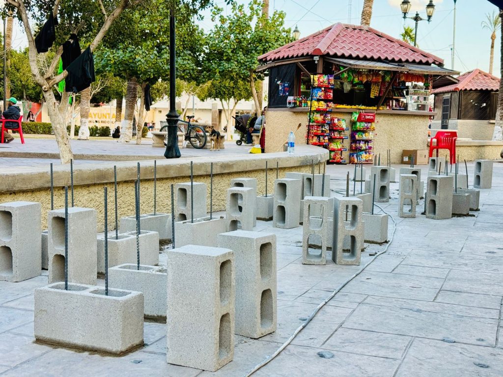 Cada mesa contarà con un acabado de concreto pulido para su prolongado cuidado, bancos de block, placa porta ficha, un porta vasos, pintura y la placa del donador.