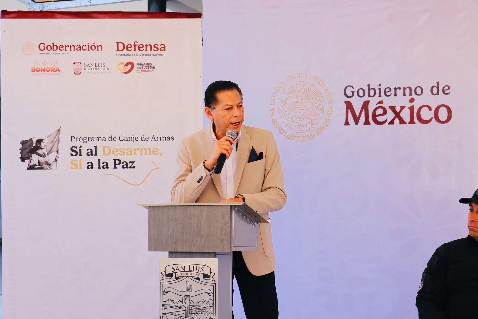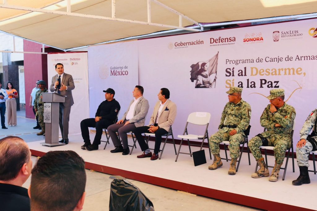 San Luis RÃo Colorado, Sonora (Mayo 06 de 2025).- Con el objetivo de reducir la violencia y prevenir accidentes en los hogares, este martes se llevà a cabo el arranque oficial del programa Nacional de Canje de Armas âSà al Desarme, Sà a la Pazâ, encabezado por el alcalde CÃsar IvÃn Sandoval GÃmez y el secretario del Gobierno del Estado de Sonora, Adolfo Salazar Razo, en coordinaciÃn con los tres niveles de gobierno.