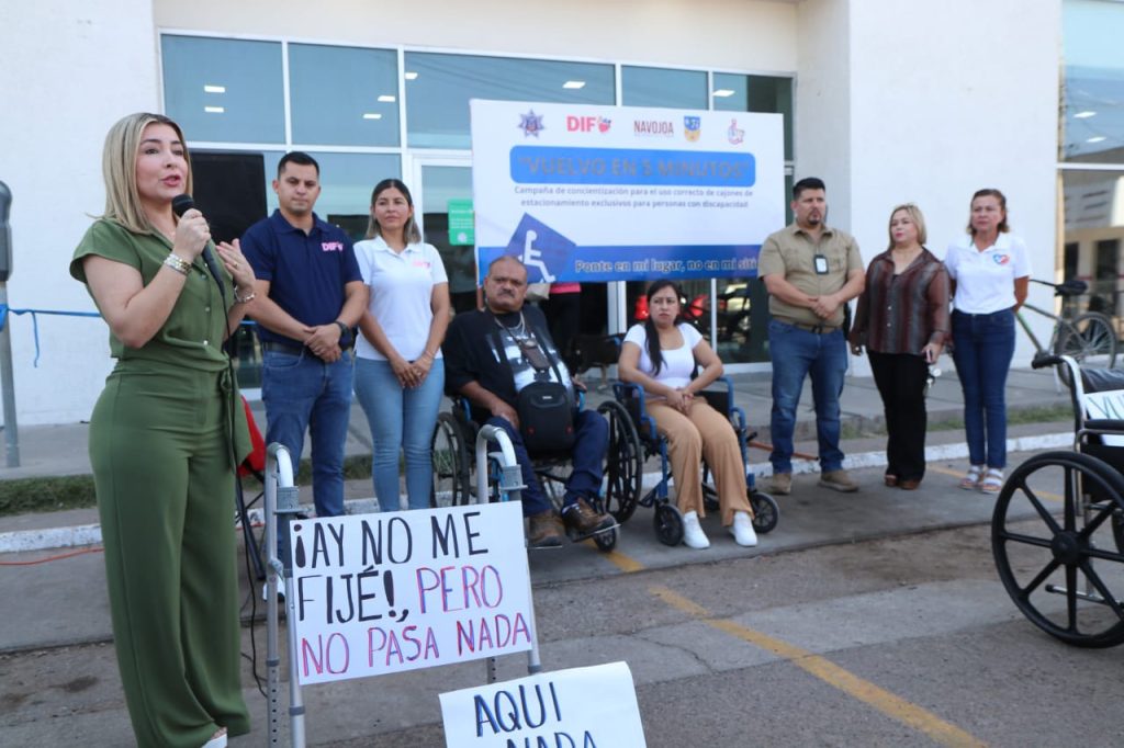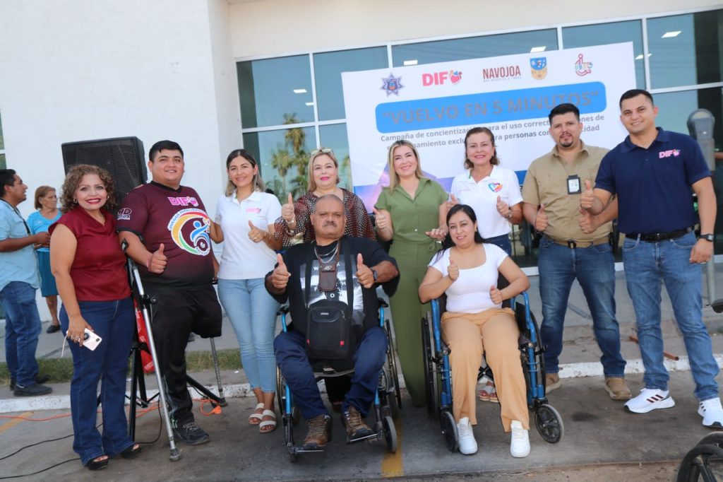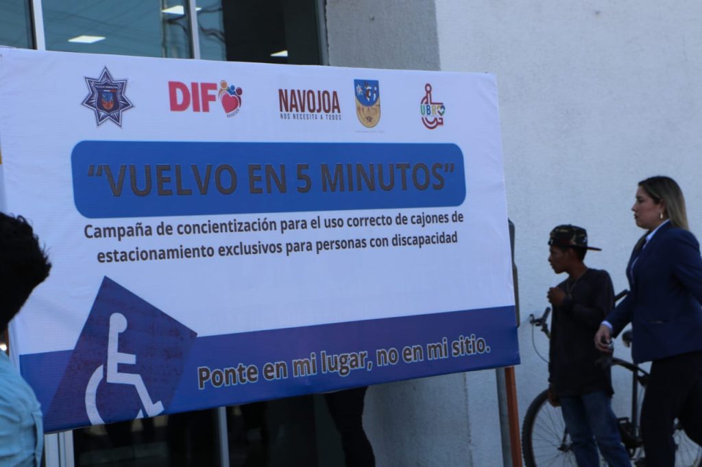 Navojoa, Sonora, 11 de julio 2024.- Con el propÃsito de la concientizaciÃn ciudadana al respeto de los estacionamientos viales para las personas con discapacidad, el gobierno municipal, que preside el alcalde Jorge Alberto ElÃas Retes, arrancà este jueves la campaÃa âVuelvo en 5 minutosâ.