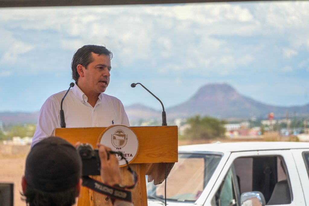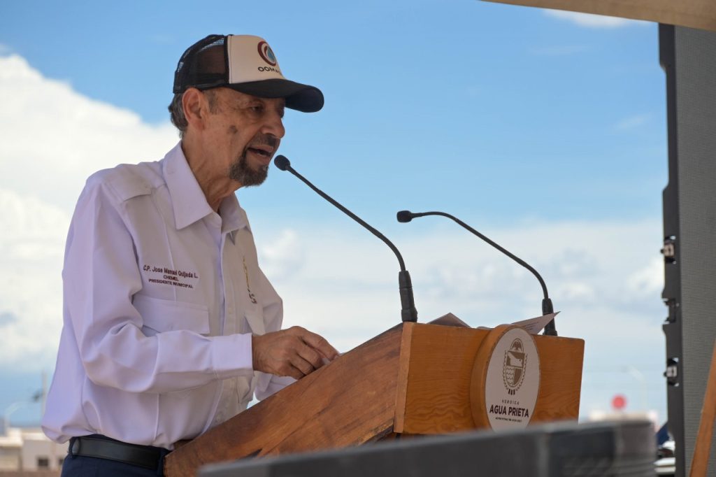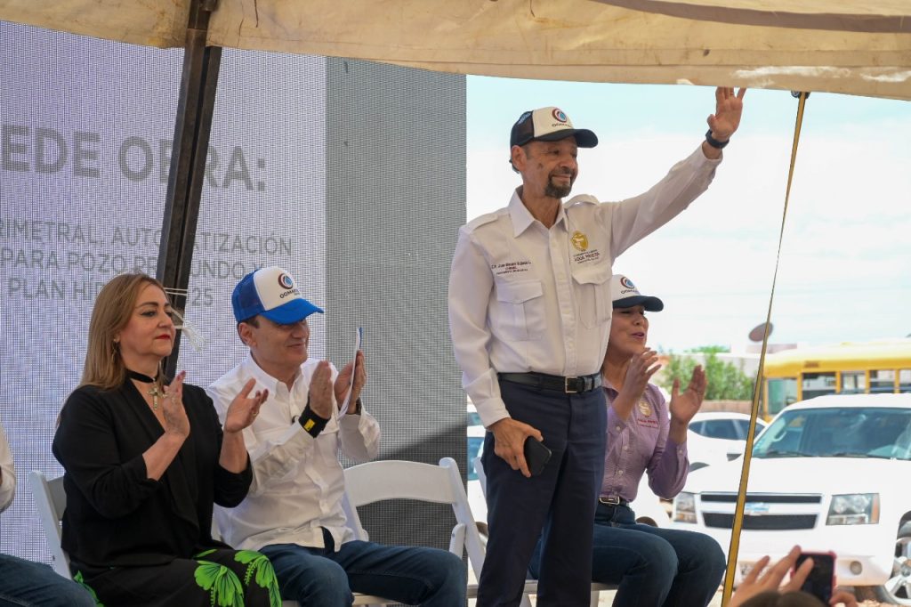 Agua Prieta, Sonora; 7 de julio de 2025.- El gobernador del estado, Alfonso Durazo MontaÃo, en compaÃÃa del alcalde Josà Manuel Quijada Lamadrid, dio el banderazo de inicio a la obra de equipamiento de un pozo profundo, en el sector noreste de Agua Prieta, que incluye la instalaciÃn de equipo, barda perimetral, sistema de automatizaciÃn y red de alta tensiÃn.