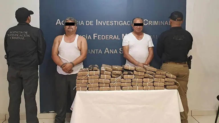 Sonora; a 23 de septiembre del 2025.- En un operativo conjunto de seguridad, dos hombres fueron detenidos cuando transportaban cerca de 50 kilos de heroÃna y fentanilo en un autobÃs de pasajeros, a la altura del kilÃmetro 32 de la Carretera Federal 2, en el tramo Santa AnaâAltar, informà la SecretarÃa de Seguridad y ProtecciÃn Ciudadana (SSPC).