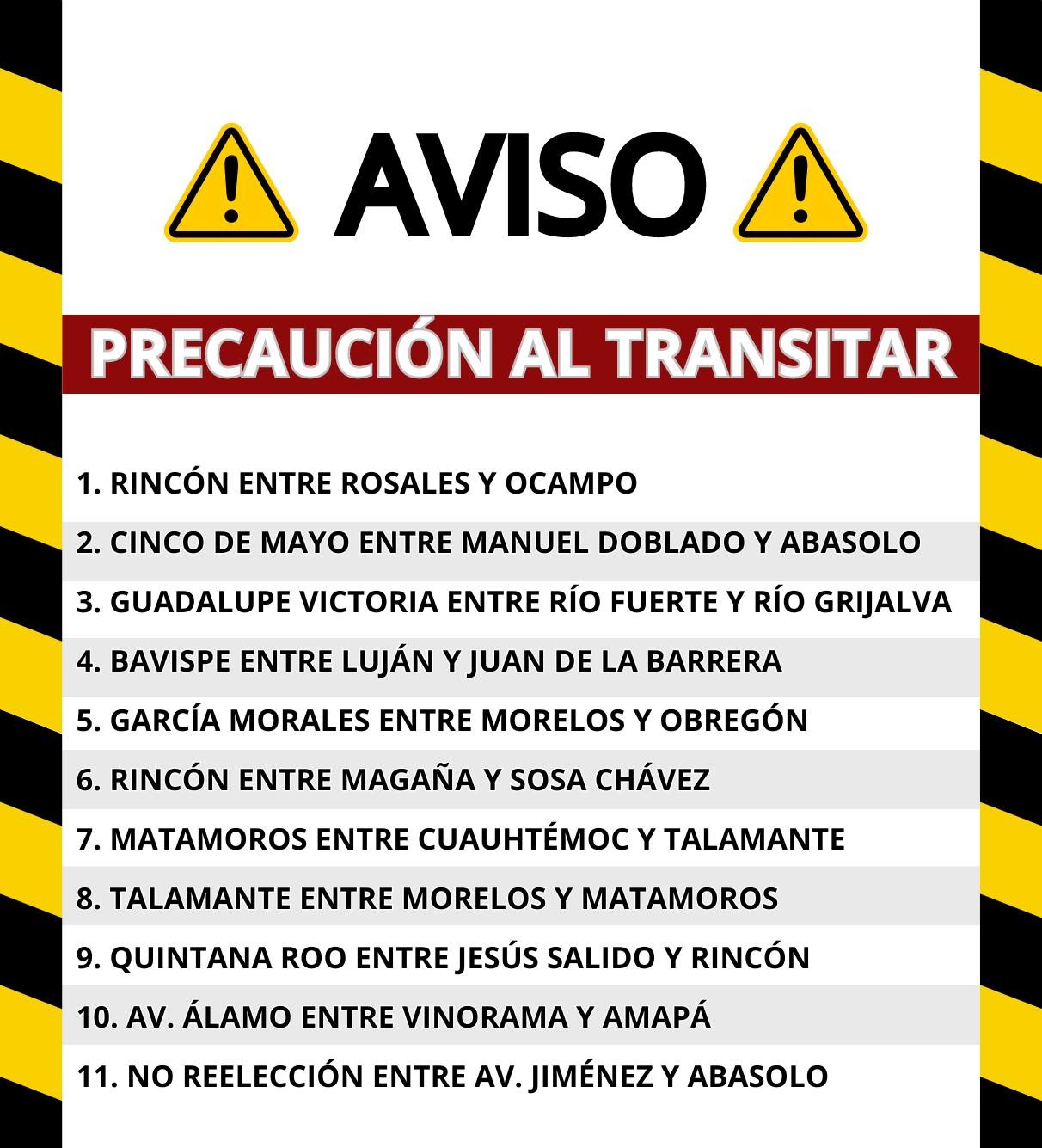 PrecauciÃn al transitar por estos lugares; se realizan trabajos en arreglos de colapsos.