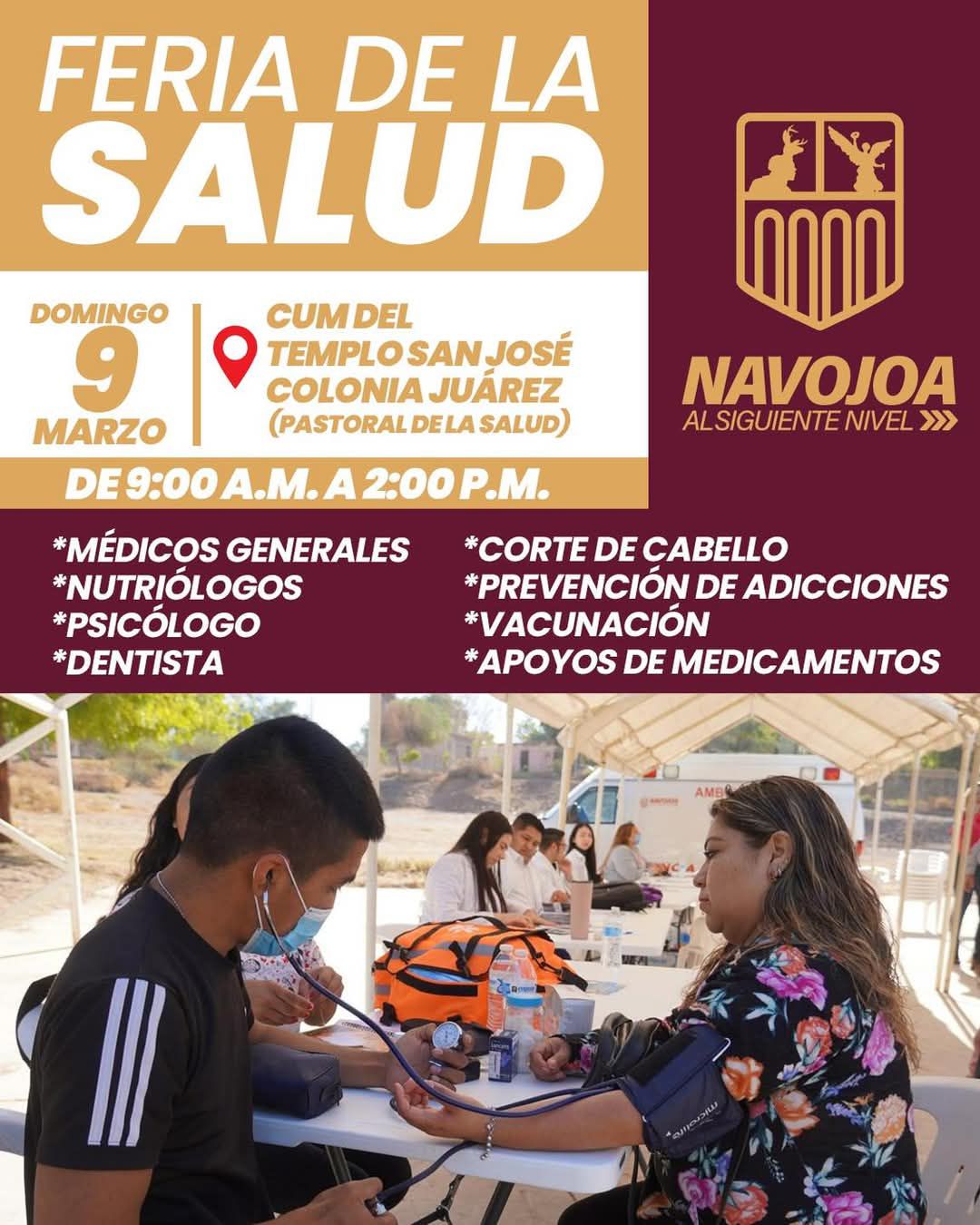 Este domingo 9 de marzo, la DirecciÃn de Salud de Navojoa te invita a participar en la Feria de la Salud.