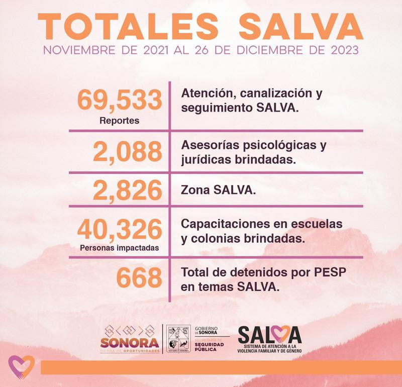 El Sistema Salva de Sonora, trabaja de manera preventiva ofreciendo capacitaciones en escuelas y colonias con mÃs de 40 mil 326 personas impactadas.
