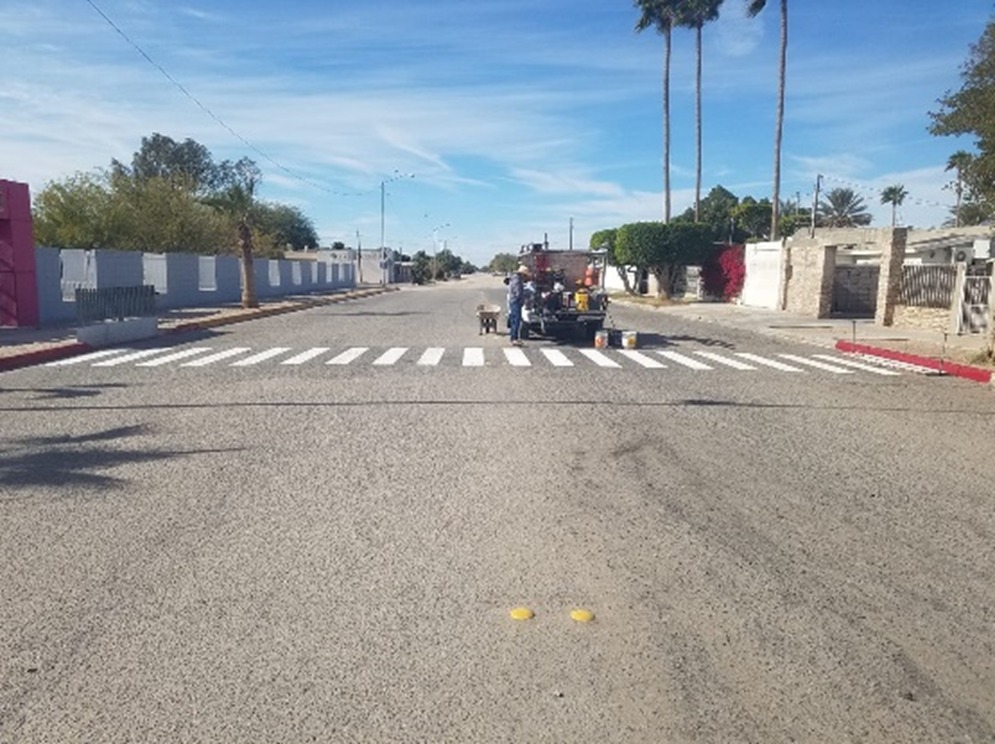 Adicionalmente, la dependencia realizà trabajos de pintado y rehabilitaciÃn de seÃalamientos en puntos de alto flujo peatonal y vehicular en la ciudad, como los son la Calzada ConstituciÃn a un costado de la ClÃnica #12 del IMSS y la garita internacional en Av. Carlos G. Calles y 1ra.