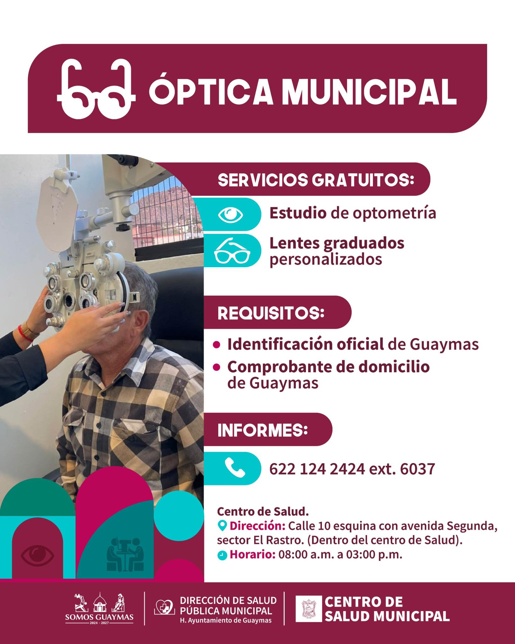 Guaymas, Sonora; a 26 de abril de 2026. Con el objetivo de apoyar la salud visual y la economía de los guaymenses, el Gobierno Municipal, en coordinación con la Dirección de Salud Pública, mantiene vigente el programa de servicios gratuitos a través de la Óptica Municipal.