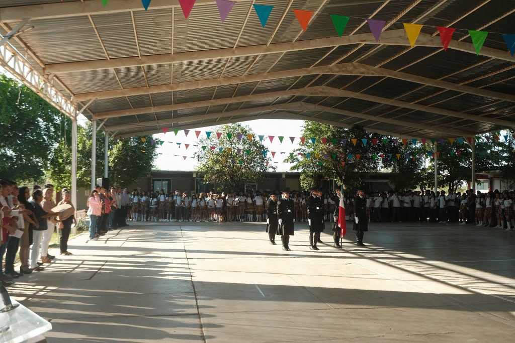 Huatabampo, Sonora; 14 de octubre de 2024. – En el marco del programa âLunes de Honores y Civismoâ, el alcalde Alberto âBetoâ VÃzquez realizà una visita al Centro de Bachillerato TecnolÃgico Industrial y de Servicios (CBTis) nÃmero 63 y al JardÃn de NiÃos âGuillermo Prietoâ.