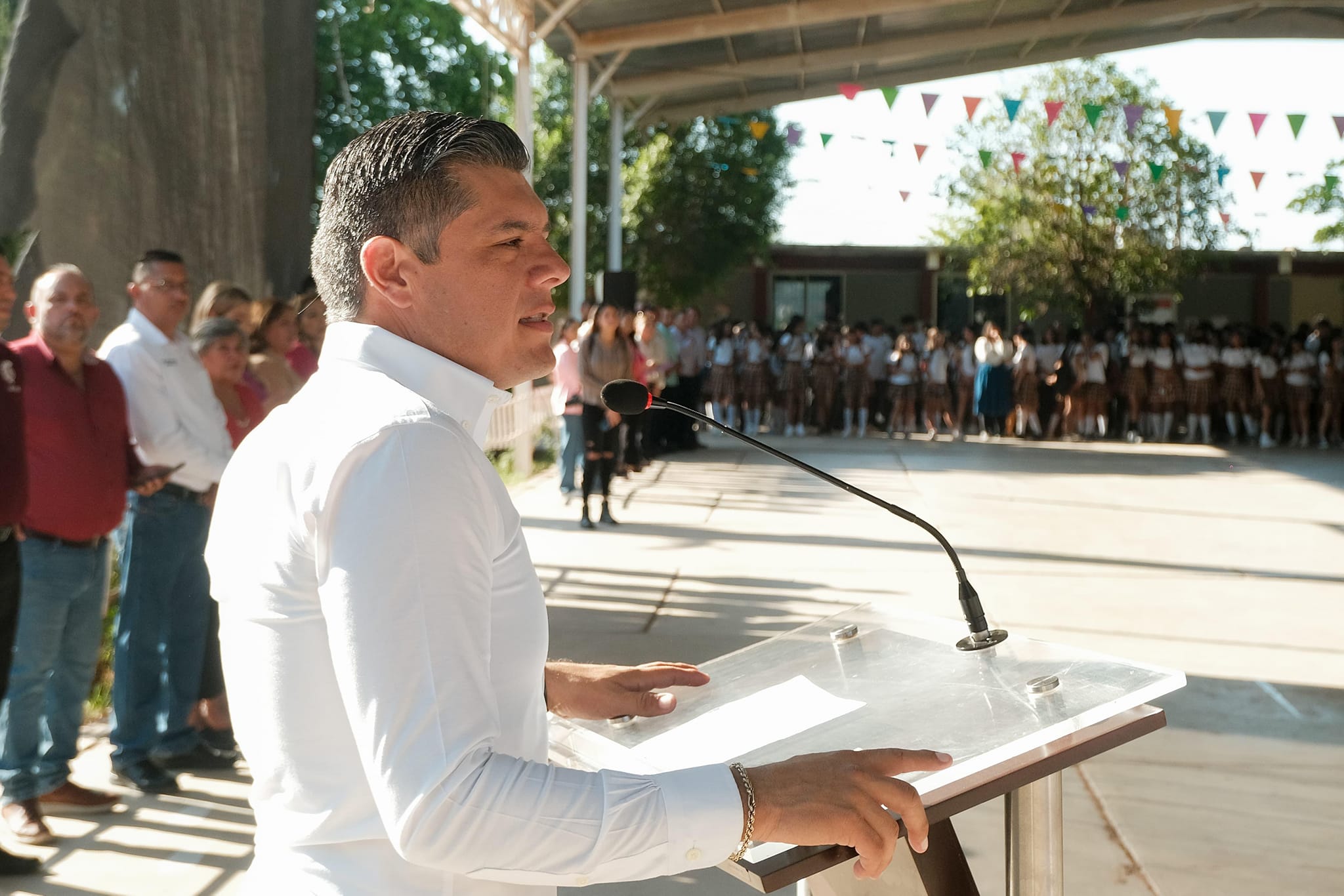 Huatabampo, Sonora; 14 de octubre de 2024. – En el marco del programa âLunes de Honores y Civismoâ, el alcalde Alberto âBetoâ VÃzquez realizà una visita al Centro de Bachillerato TecnolÃgico Industrial y de Servicios (CBTis) nÃmero 63 y al JardÃn de NiÃos âGuillermo Prietoâ.