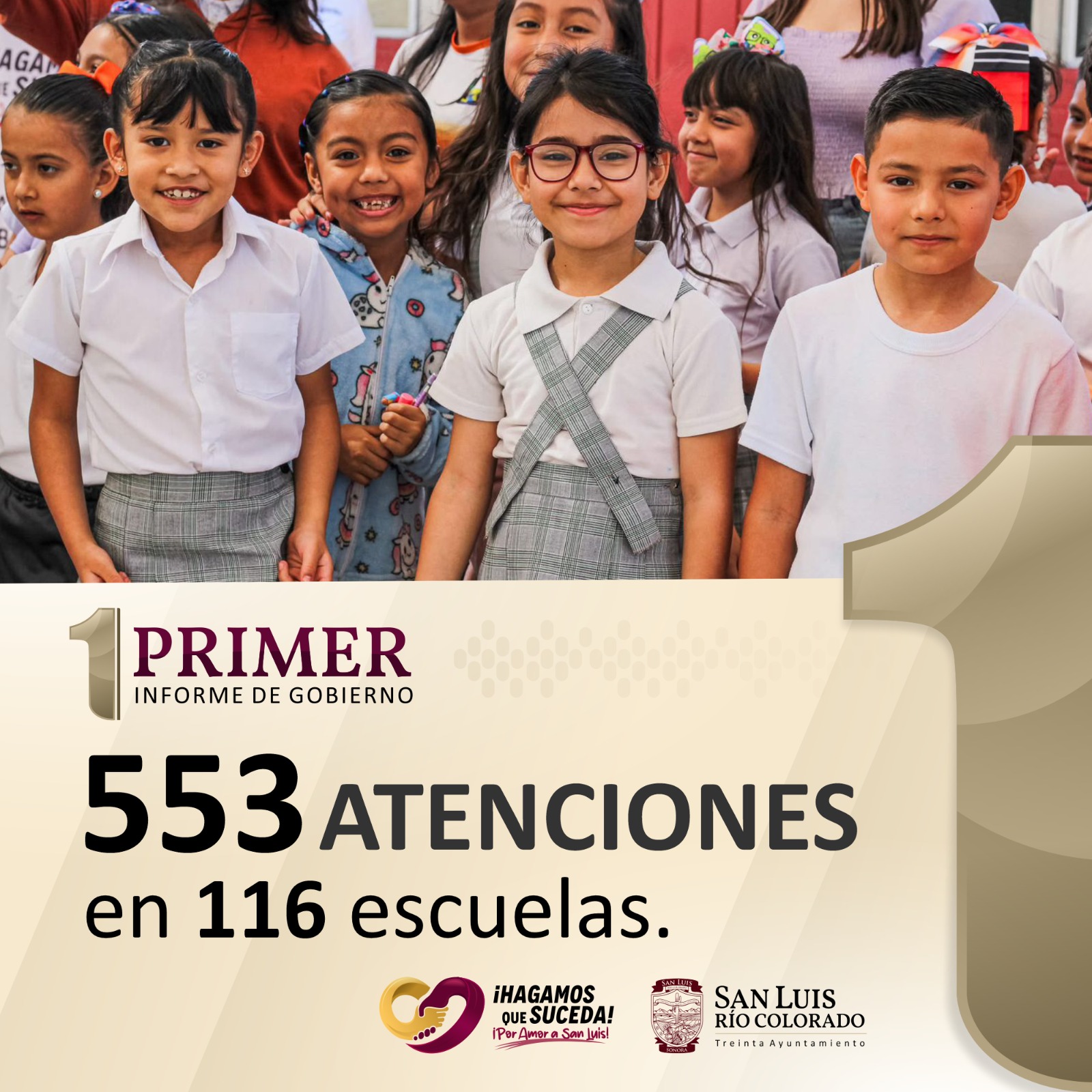 San Luis RÃo Colorado, Sonora (07 Septiembre 2025).- En el marco del Primer Informe de Gobierno del alcalde CÃsar IvÃn Sandoval GÃmez, se destacà la creaciÃn de la DirecciÃn de EducaciÃn Municipal, la cual se constituyà oficialmente el pasado 13 de enero de 2025, y desde entonces ha brindado mÃs de 500 atenciones en 116 escuelas de todos los niveles educativos.