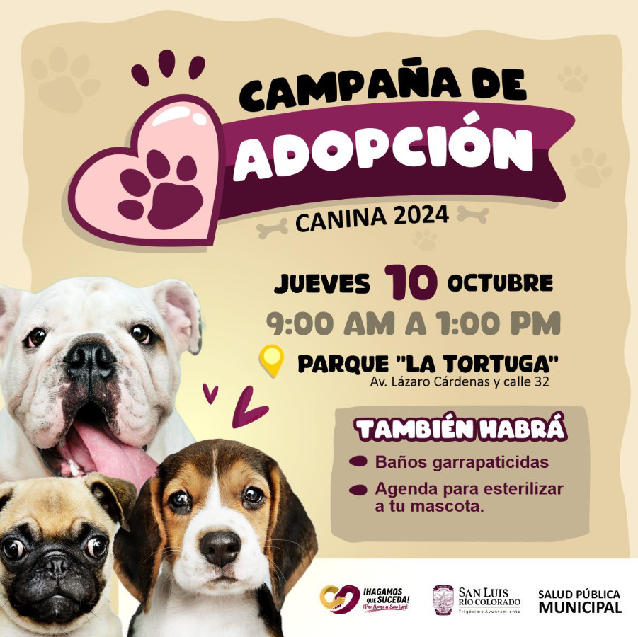 CampaÃa de adopciÃn de mascotas el jueves 10 de octubre en el parque La Tortugað