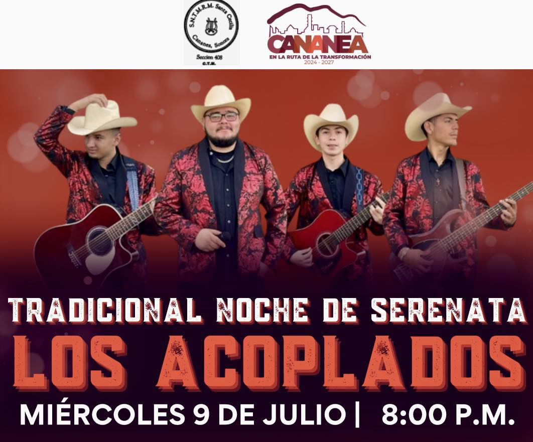 ð La tradiciÃn sigue viva en Cananea. Este miÃrcoles 9 de julio, el H. Ayuntamiento en coordinaciÃn con el Sindicato de MÃsicos Santa Cecilia, invita a la comunidad a disfrutar de una velada llena de mÃsica, antojitos y convivencia familiar.