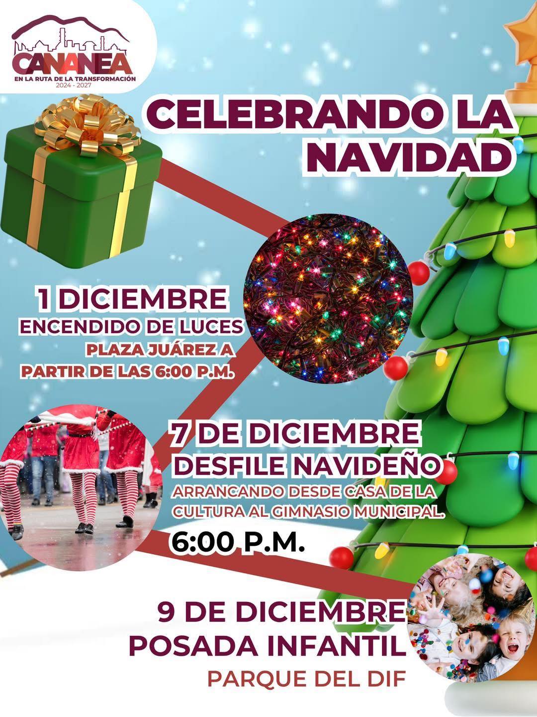 De acuerdo con la programaciÃn oficial, el 1 de diciembre a las 6:00 de la tarde se realizarà el encendido de luces navideÃas en la Plaza JuÃrez, donde se espera la asistencia de familias cananenses para dar la bienvenida a esta Ãpoca del aÃo.