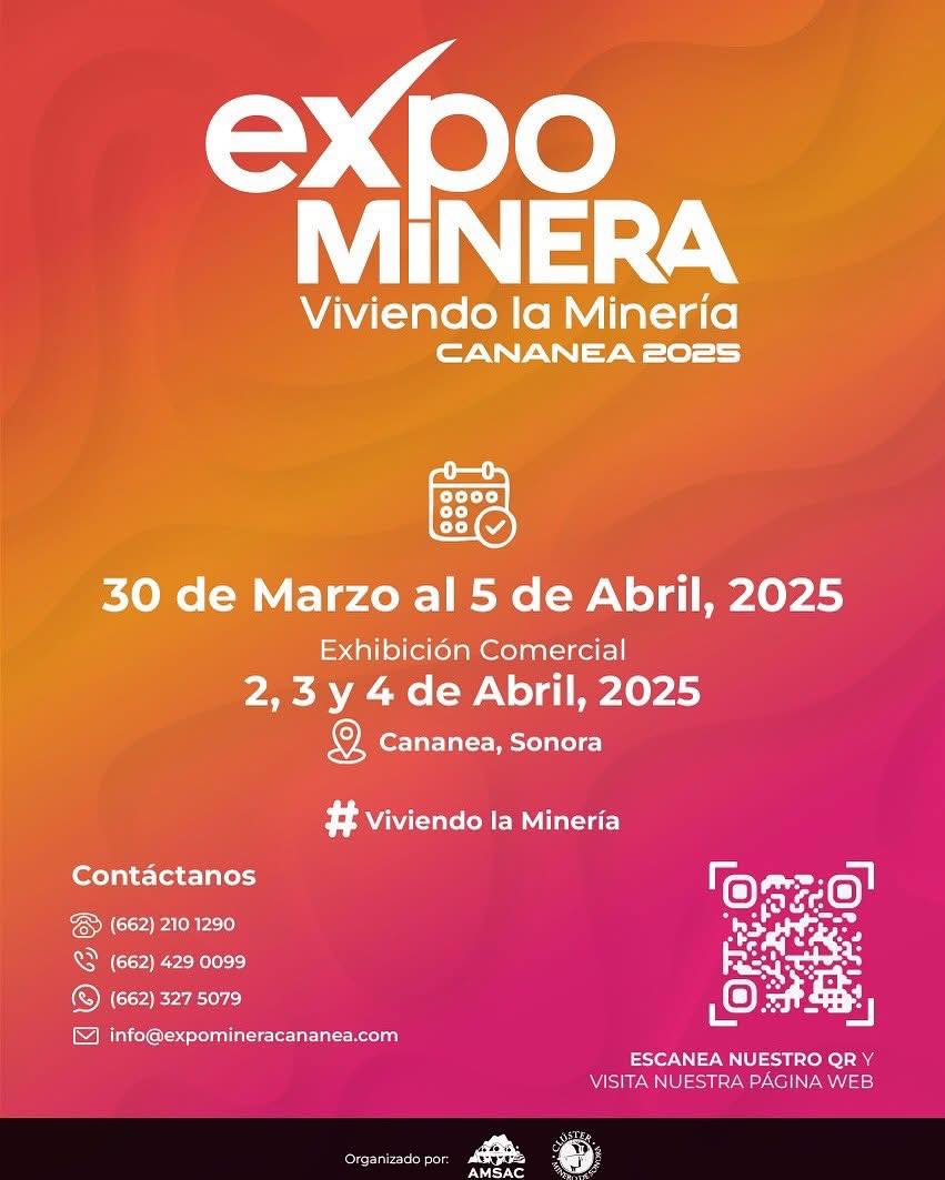 Cananea, Sonora | Este domingo 30 de marzo, Cananea se prepara para dar inicio a la Gran Expo Minera 2025, un evento que reunirà a la comunidad, empresas, y especialistas del sector minero. Este evento busca ser una plataforma para compartir conocimientos, experiencias y las Ãltimas innovaciones de la industria.