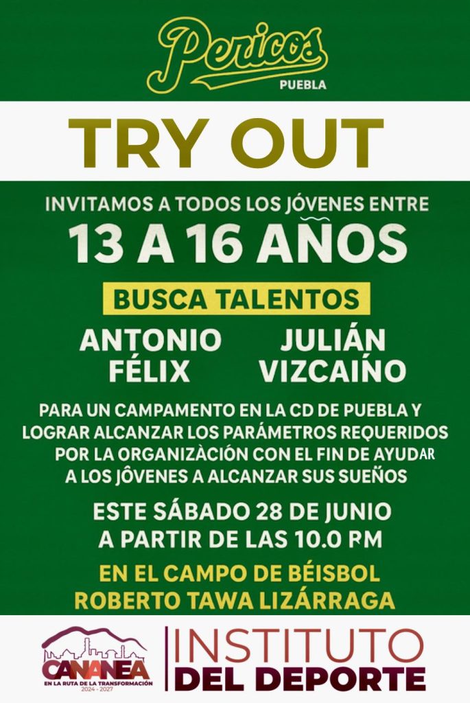 Este Try Out es una excelente oportunidad para todos los jÃvenes beisbolistas locales que sueÃan con una carrera profesional. ÂNo dejes pasar esta oportunidad y ven a demostrar tu talento en el diamante!