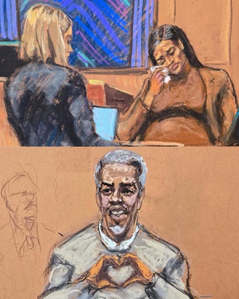 En su reciente audiencia, Combs aparecià en un boceto judicial enviando un gesto en forma de corazÃn a sus familiares. La imagen contrasta con los testimonios, incluyendo el de su expareja Cassie Ventura, quien denuncià abusos fÃsicos y manipulaciones durante su relaciÃn con el artista.