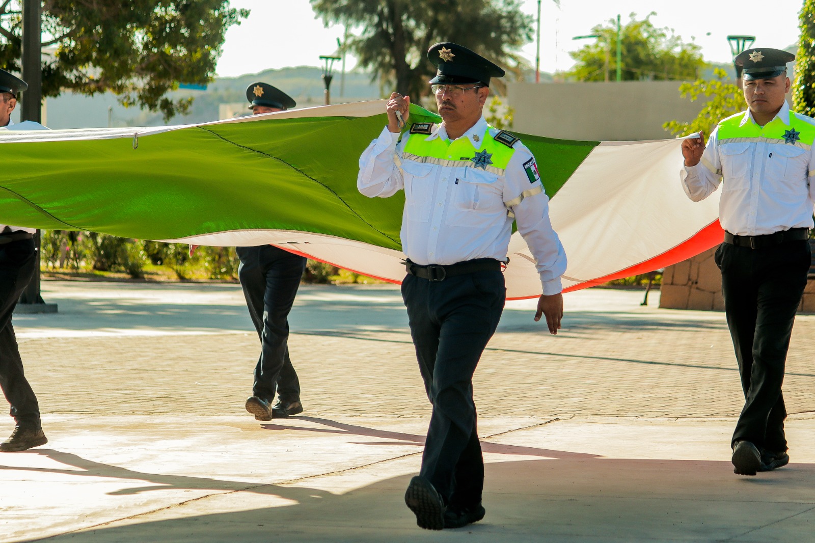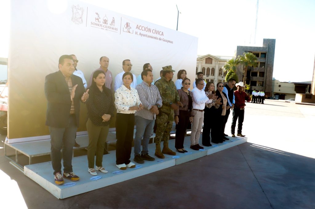 En esta ocasiÃn, la ceremonia contà con la participaciÃn de la escolta del Departamento de TrÃnsito Municipal, mientras que el personal del DIF Guaymas se encargà de leer las efemÃrides y reflexionar sobre el valor del mes.