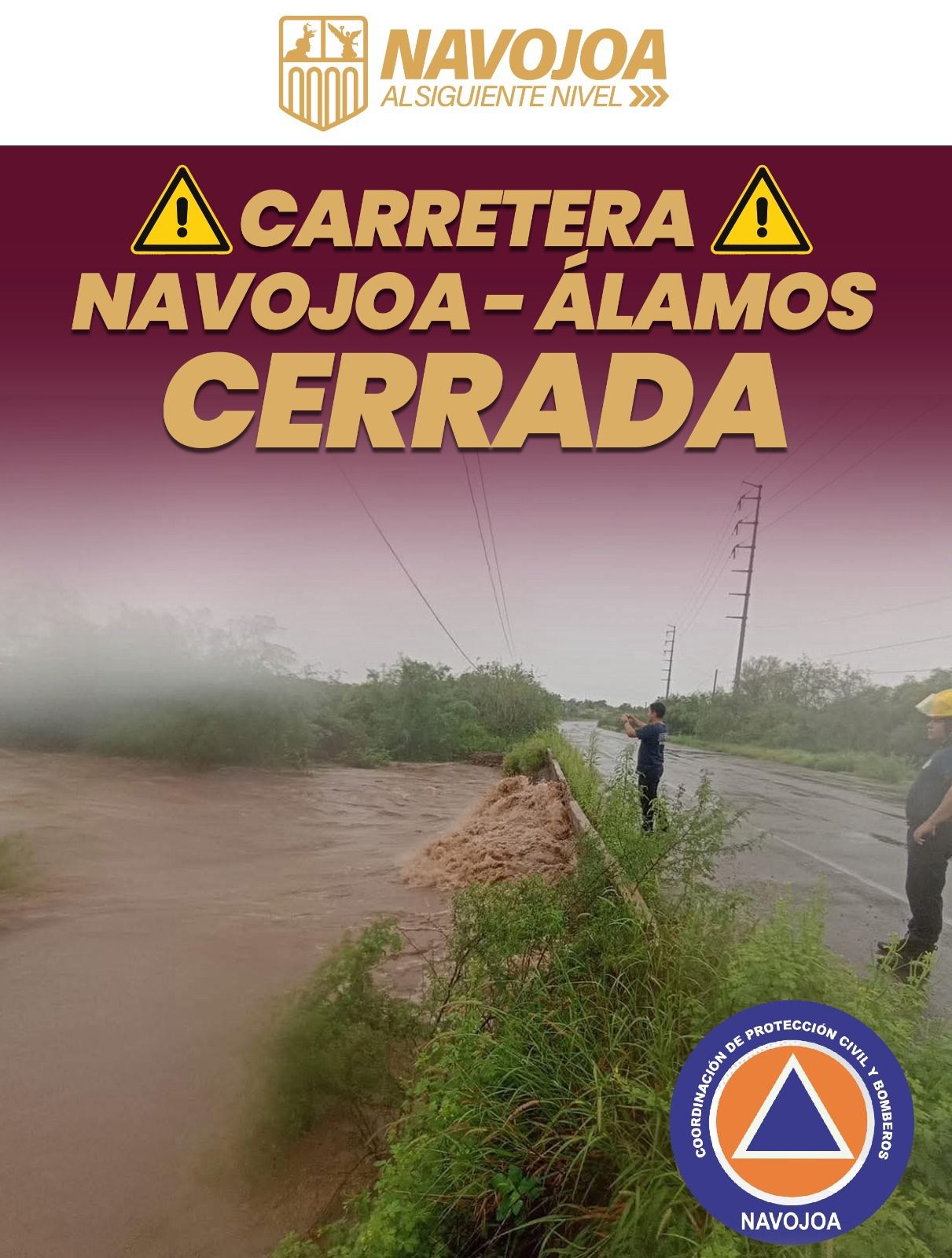 Navojoa, Sonora; 05 de septiembre de 2025.- Autoridades informaron que, de manera preventiva, se mantiene cerrado el tramo carretero NavojoaâÃlamos, con el objetivo de evaluar posibles daÃos ocasionados por las recientes lluvias en distintos puentes y estructuras de la vÃa.