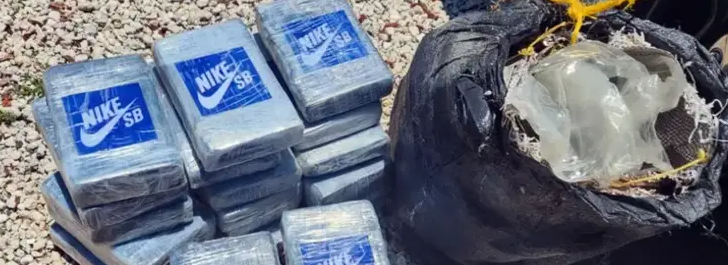 Los 25 paquetes de cocaÃna, cada uno pesando aproximadamente un kilogramo, fueron hallados a unos 100 pies bajo el agua. La imagen compartida por las autoridades muestra los paquetes marcados con la marca «Nike SB», junto con el logotipo de la famosa empresa de ropa deportiva.