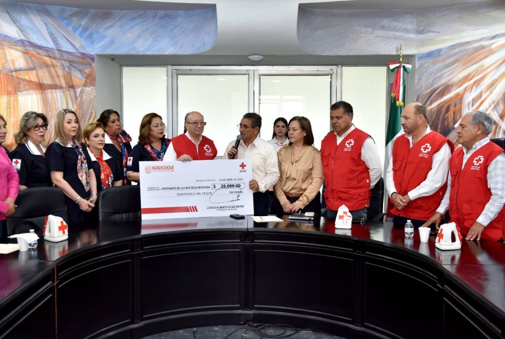 Navojoa, Sonora, 3 de abril 2025.- Con el primer donativo econÃmico a la DelegaciÃn de Cruz Roja Navojoa, por el ayuntamiento que preside el alcalde Jorge Alberto ElÃas Retes, arrancà este jueves la colecta anual de la benemÃrita instituciÃn, en un acto oficial llevado a cabo en Sala de Cabildo de Palacio.