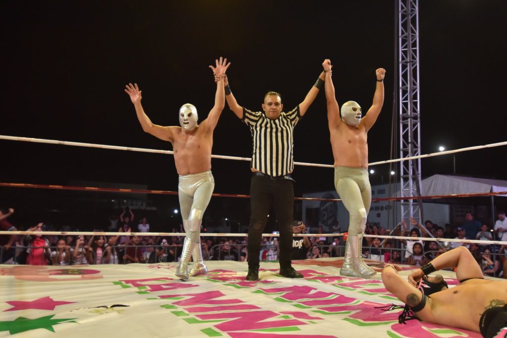 La cartelera de contienda de parejas estuvo amenizada por el famoso Hijo del Santo quien agradecià a ElÃas Retes por traer innovadoramente a Navojoa dicho espectÃculo, El Santo Jr., Ãngel Blanco, Lolita, Fishman Jr., Romeo, MÃscara AÃo 2000 Jr., Morgana, Anarki 637 y BÃliko.