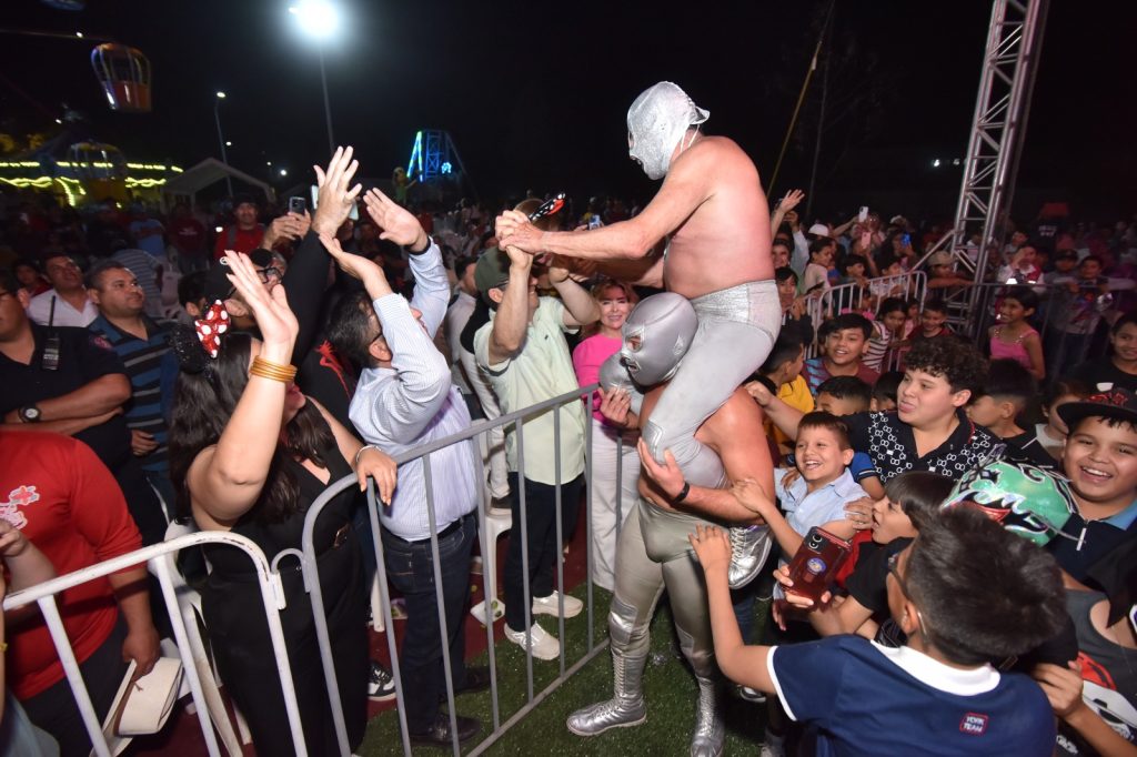 Navojoa, Sonora, 30 abril 2025.- Un inolvidable e inÃdito festejo vivieron este miÃrcoles miles de niÃos y niÃas navojoense en el Parque Infantil, con una espectacular funciÃn de lucha libre de talla nacional, encabezada por el legendario Hijo del Santo, como regalo especial del gobierno del alcalde Jorge Alberto ElÃas Retes y el DIF Municipal que preside Luz Argel Gaxiola de ElÃas.