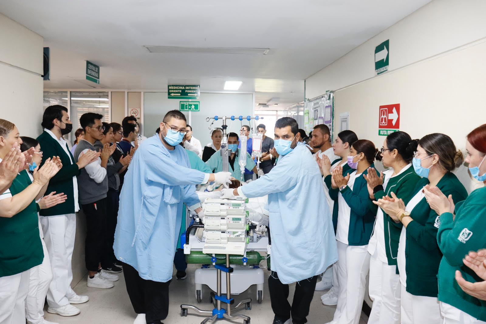 AcompaÃado del director del HGZ No. 2, Juan Carlos Villano Castillejos, el subdirector Sergio JesÃs Medina Torres y personal del IMSS, realizaron una ceremonia a la joven mientras era trasladada por el pasillo de honor, que se realizà desde la Unidad de Cuidados Intensivos (UCI) hasta el Ãrea de quirÃfano, donde se le dio la despedida.