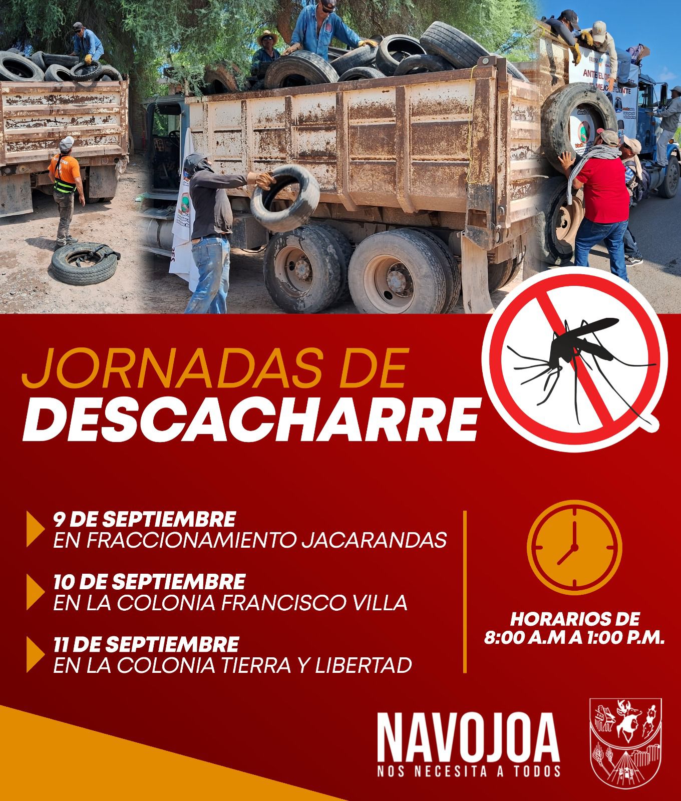 La DirecciÃn de Salud Municipal de Navojoa sigue avanzando con su campaÃa de descacharre, con el objetivo de prevenir la proliferaciÃn de mosquitos y otras plagas que afectan la salud pÃblica. Esta iniciativa busca eliminar los objetos en desuso que acumulan agua y se convierten en criaderos de mosquitos, principales transmisores de enfermedades como el dengue, zika y chikungunya.