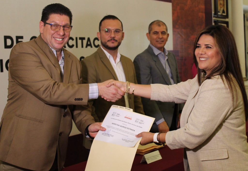 En una emotiva ceremonia que tuvo lugar hoy al mediodÃa en el salÃn Gobernadores del Palacio de Gobierno, se llevà a cabo la Ceremonia de Fin de Curso de la «CampaÃa Intensiva de CapacitaciÃn ArchivÃstica a Municipios de Sonora». Este proyecto, resultado de la colaboraciÃn entre la SecretarÃa de Gobierno y el Congreso del Estado, tiene como objetivo fortalecer la capacidad archivÃstica de diversas localidades a travÃs del cumplimiento de la Ley NÃmero 166 de Archivos para el Estado de Sonora.