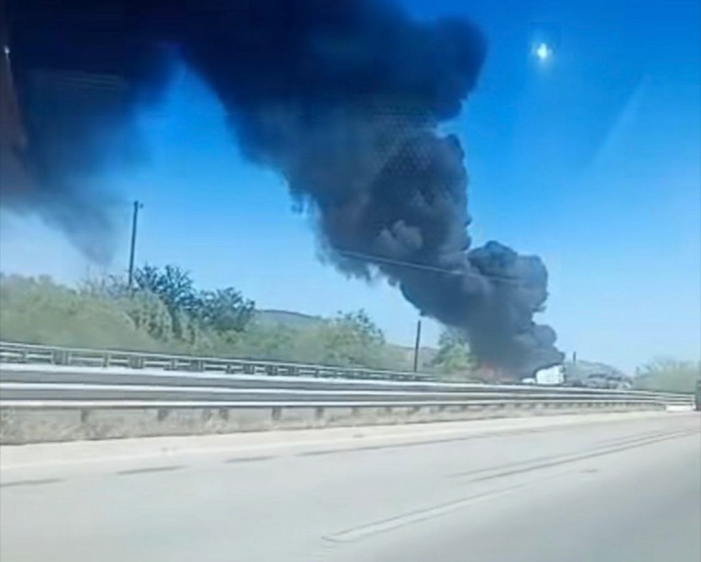Cd. Obregón, Sonora, 19 de abril del 2026.- Un fuerte accidente derivó en un incendio de gran magnitud luego de que un tráiler que transitaba de sur a norte por la carretera federal México 15, en el tramo Navojoa–Ciudad Obregón, se incendiara por causas que aún no han sido determinadas.