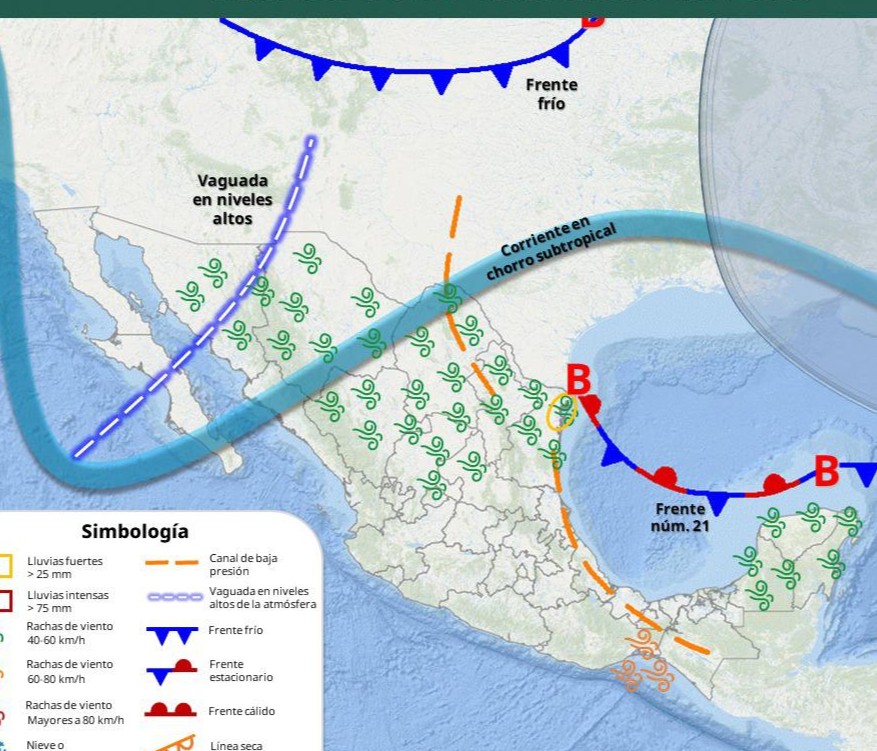 El reporte meteorolÃgico indica condiciones estables y cielos despejados, sin probabilidad de lluvia. Sin embargo, una «vaguada en altura» provocarà rachas de viento importantes, de entre 40 y 60 km/h, especialmente en el oriente y centro de la entidad.