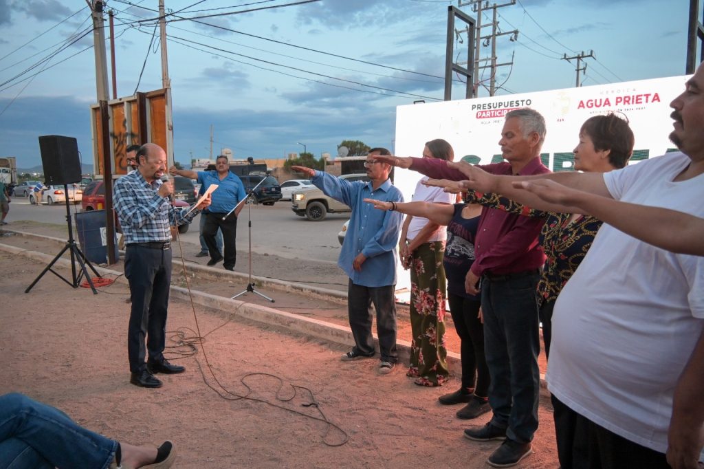 Agua Prieta, Sonora; a 31 de marzo de 2026.â El alcalde Josà Manuel Quijada Lamadrid entregà la obra de mejoramiento de alumbrado pÃblico en el sector noroeste, como parte del Presupuesto Participativo 2026.