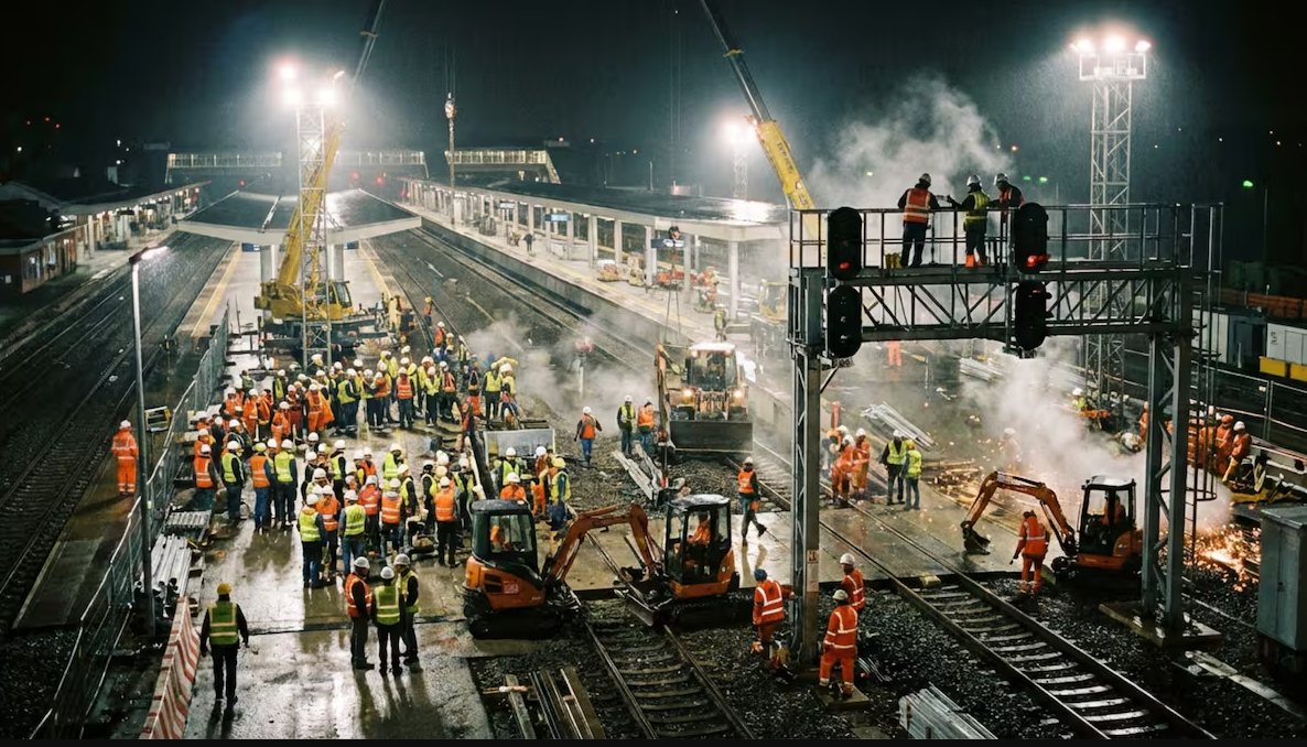 Imaginen remodelar una estaciÃn de tren clave, conectar tres lÃneas ferroviarias y pavimentar andenes, todo entre la cena y el desayuno. En China, esto no es ficciÃn. Un ejÃrcito de 1,500 trabajadores, apoyados por 23 excavadoras y 7 trenes de trabajo, transformà la estaciÃn de Nanlong en un tiempo rÃcord de 9 horas.