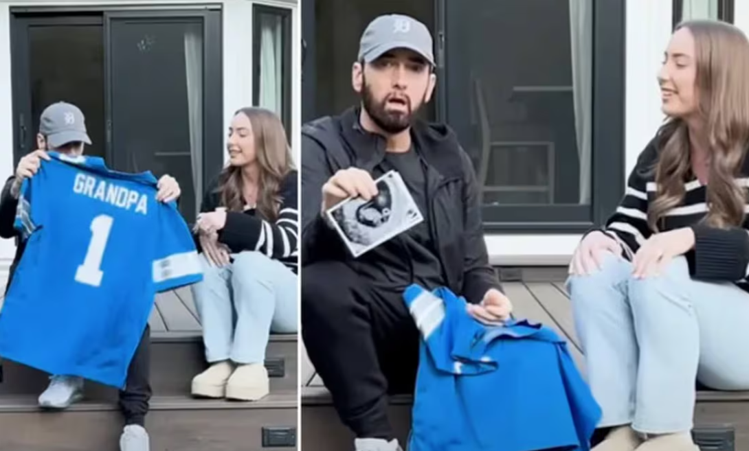 En este emotivo video, Hailie Jade, la hija de Eminem, quien tiene 28 aÃos, le revela la noticia de su maternidad a su padre de una manera muy especial. Durante el clip, Hailie le entrega a Eminem una camiseta personalizada de los Detroit Lions que dice «Abuelo» en la espalda. En la misma escena, el rapero sostiene en sus manos una ecografÃa del bebÃ, lo que hace que el momento sea aÃn mÃs conmovedor.
