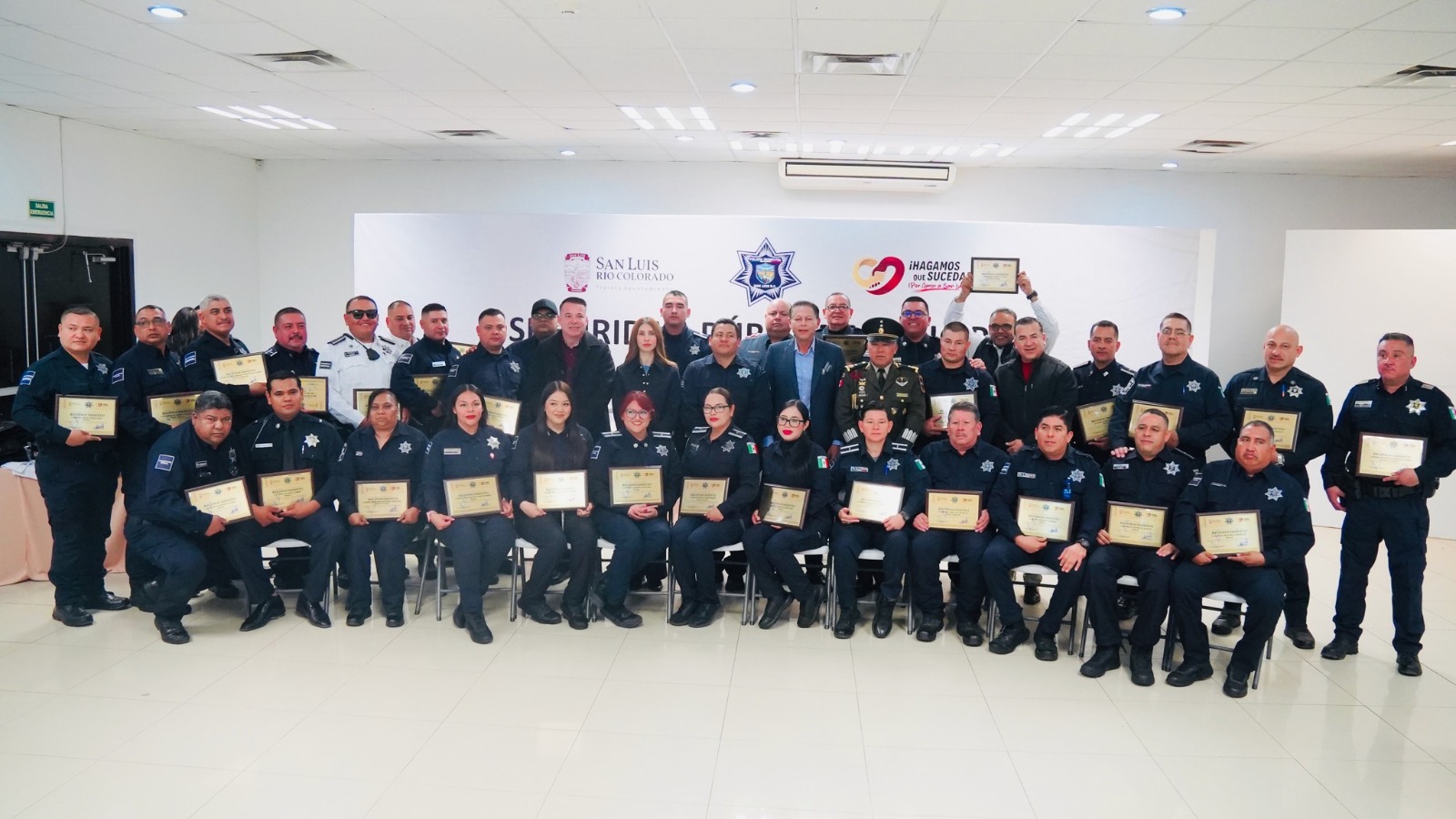 El acto concluyà con un mensaje de unidad y reconocimiento, refrendando el respaldo del Gobierno Municipal a la corporaciÃn policial y reiterando que, mediante el trabajo coordinado, el equipamiento adecuado y la vocaciÃn de servicio, se continuarà fortaleciendo la seguridad y la paz en San Luis RÃo Colorado.