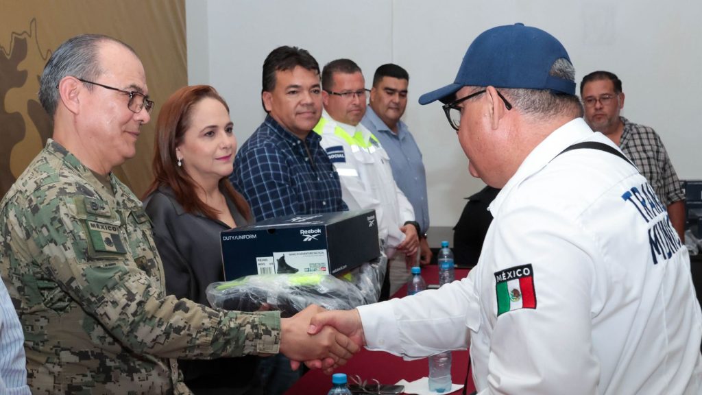 Guaymas, Sonora, 12 de junio de 2024. Elementos de la direcciÃn de Seguridad PÃblica y TrÃnsito Municipal recibieron de manera simbÃlica uniformes como parte del compromiso de la doctora Karla CÃrdova GonzÃlez para que cuenten con el equipo necesario para la realizaciÃn de sus actividades.