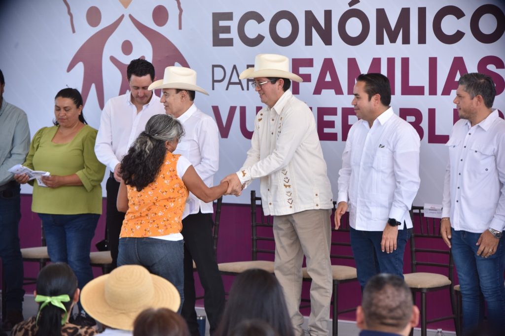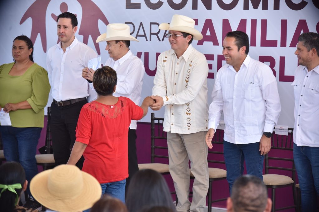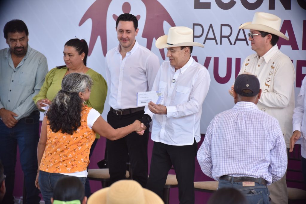 Navojoa, Sonora, 15 de julio 2025.- En medio del entusiasmo de miles de habitantes del sur, el gobernador Alfonso Durazo MontaÃo entregà hoy mÃs de 2 mil 600 tarjetas de apoyos de âFortalecimiento EconÃmico para Familias Vulnerablesâ, en compaÃÃa del alcalde Jorge Alberto ElÃas Retes, el secretario del Bienestar en Sonora, Fernando Rojo de la Vega Molina, y el senador Heriberto Aguilar Castillo.