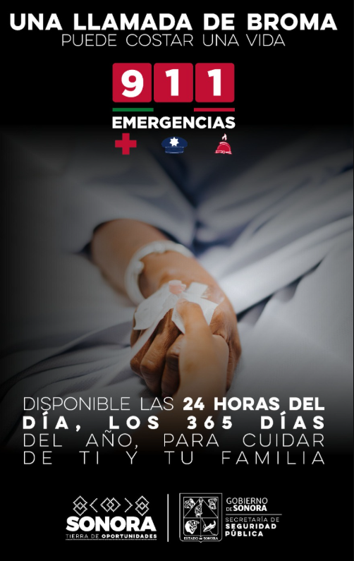 Como parte de la cultura del uso responsable al 9-1-1, la SecretarÃa de Seguridad PÃblica (SSP) de Sonora hace un llamado a la ciudadanÃa para que no realice llamadas de broma a la lÃnea de emergencias, especialmente durante la temporada de fin de aÃo.