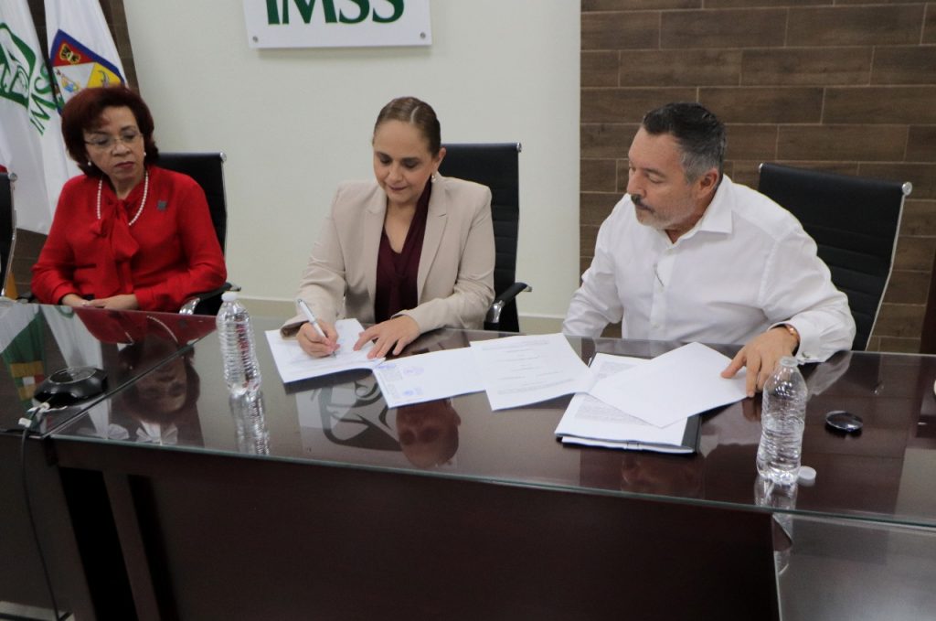La titular del IMSS en Sonora, doctora MarÃa de Lourdes DÃaz Espinosa, y la presidenta municipal de Guaymas, doctora Karla CÃrdova GonzÃlez, firmaron las escrituras correspondientes para la donaciÃn del terreno ubicado en Bulevar Aeropuerto y Bulevar RamÃn Uribe Fourcade, en la colonia San GermÃn.
