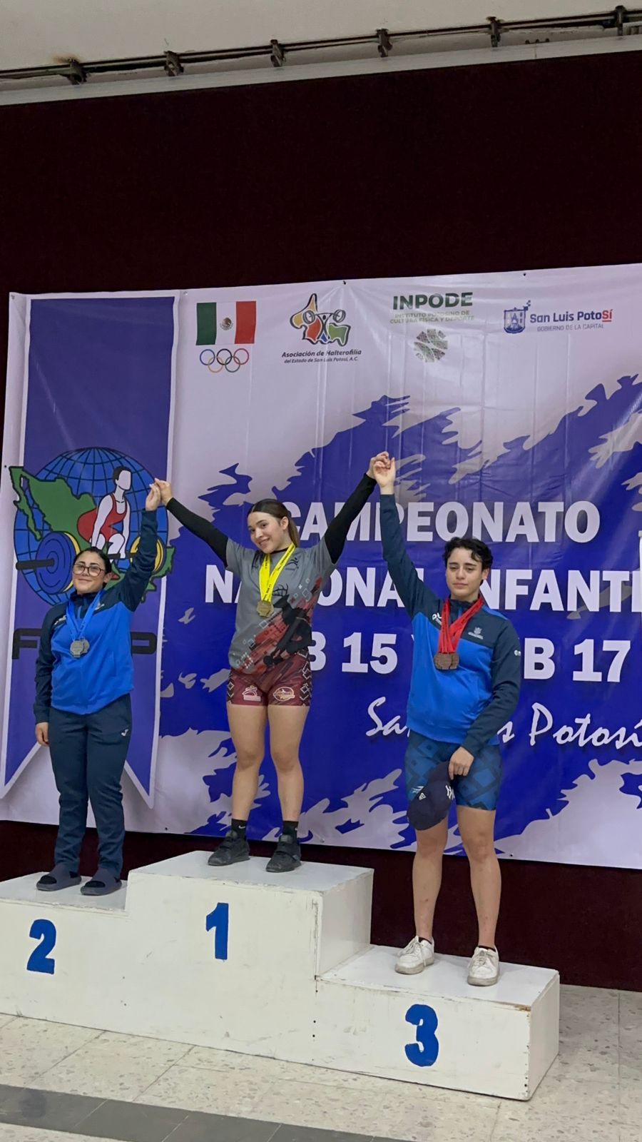 Hermosillo, Sonora; 2 de octubre del 2023.- EsthefanÃa Escalante MendÃvil, alumna del Colegio de Estudios CientÃficos y TecnolÃgicos del Estado de Sonora (Cecyte), plantel Hermosillo I La Manga, ganà medalla de oro en el Nacional Infantil sub 15 y sub 17 de Halterofilia en San Luis PotosÃ.