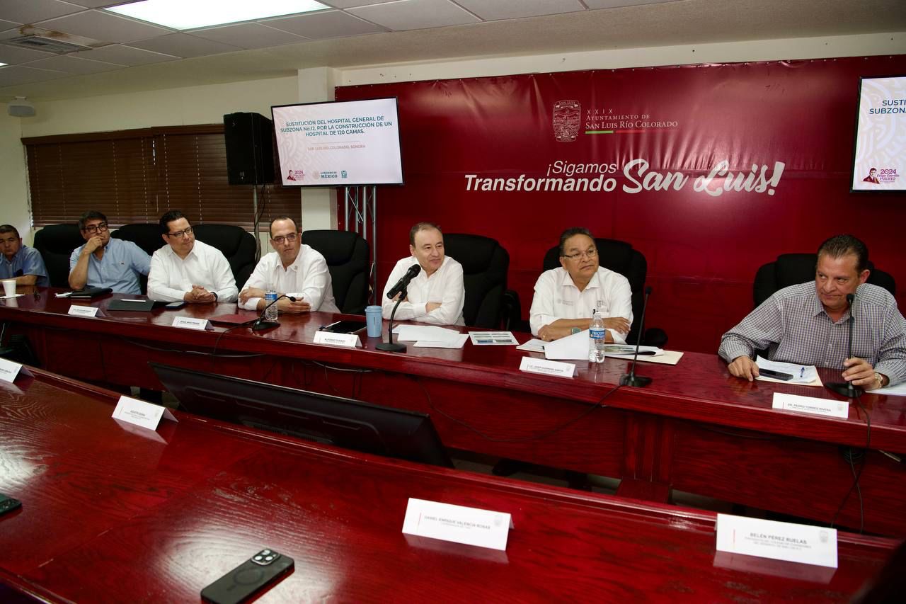 Hermosillo, Sonora; 23 de abril de 2024.- El gobernador Alfonso Durazo MontaÃo, encabezà la Segunda reuniÃn del comità ciudadano de seguimiento y testimonio social en el proceso de construcciÃn del Hospital General de Zona IMSS Bienestar, en San Luis RÃo Colorado, el cual tendrà una inversiÃn superior a los mil 611 millones de pesos.