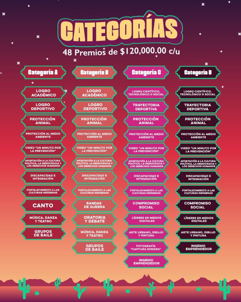 El mandatario informà que, en esta ediciÃn, 48 jÃvenes de entre 12 y 29 aÃos serÃn premiados con 120 mil pesos cada uno, reafirmando el compromiso de su gobierno por abrir mÃs oportunidades e impulsar la formaciÃn de quienes representan el presente y futuro de Sonora.