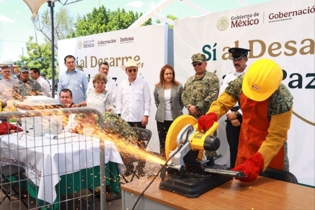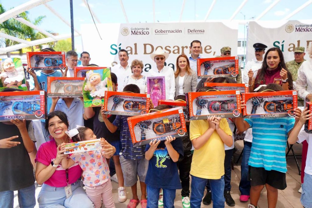 Con el respaldo de la SecretarÃa de GobernaciÃn, durante su gira de trabajo por Cajeme, el mandatario sonorense destacà que, estas acciones tienen la finalidad de disminuir los delitos de alto impacto asociados a las armas de fuego, y detallà que a travÃs del programa âSà al Desarme, Sà a la Pazâ se beneficia directamente la formaciÃn de niÃas y niÃos con el canje de juguetes bÃlicos por didÃcticos. La ciudadanÃa en general podrà canjear armamento y municiones de manera anÃnima por dinero en efectivo en los centros que se establecieron en la plaza de la Catedral Sagrado CorazÃn de JesÃs, ubicada en calle Sonora 166, colonia Centro.