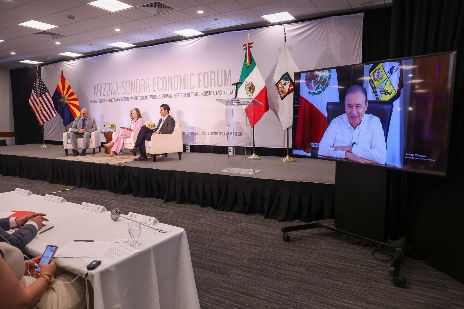 – El mandatario sonorense, durante la ArizonaâSonora Economic Forum, resaltà que ambos estados comparten mÃs que una frontera; comparten la uniÃn de voluntades de transformar las comunidades con inversiÃn, innovaciÃn y desarrollo humano, fortaleciendo los lazos que abren nuevas oportunidades de crecimiento econÃmico y social para ambas regiones.